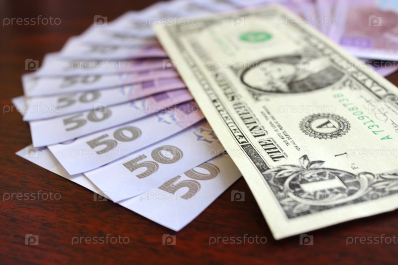 Доллар и гривны, изолированные на темном фоне