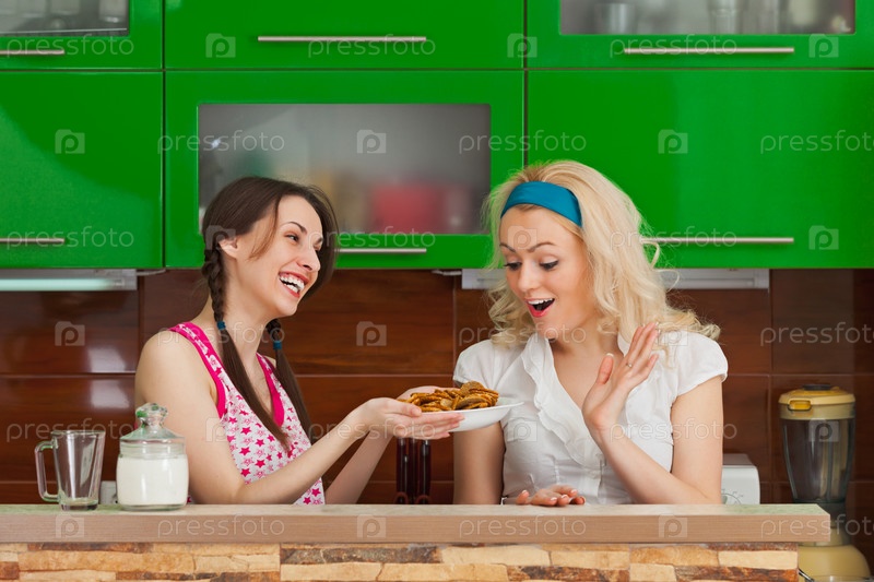 Девушки пробуют свежее домашнее печенье