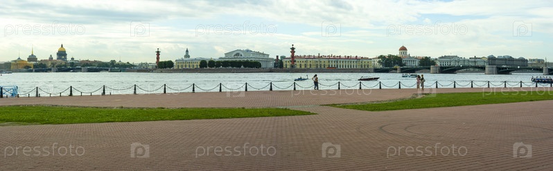 Вид на Стрелку Васильевского острова и Биржевой мост с Заячьего острова. Санкт-Петербург