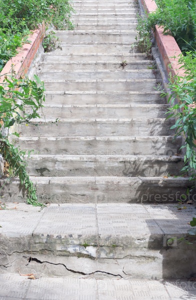 Бетонная лестница, окруженная зеленью