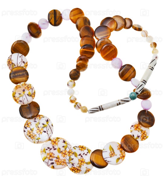 Ожерелье из перламутра, тигрового глаза, резной кости