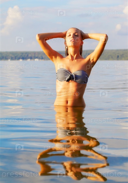Красивая блондинка в море