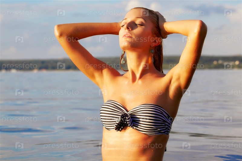 Красивая блондинка в море