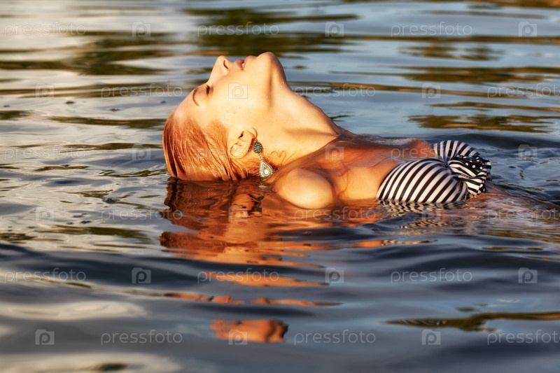 Красивая блондинка в море