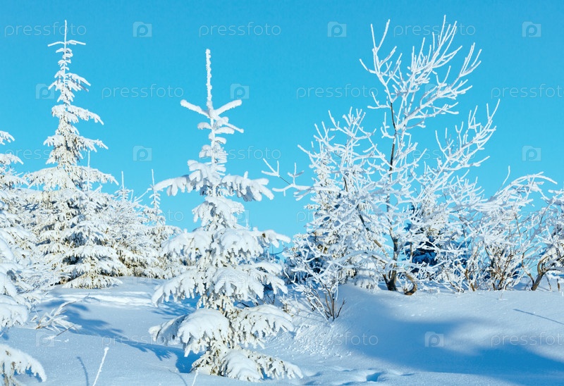 Восход солнца, зимний горный пейзаж