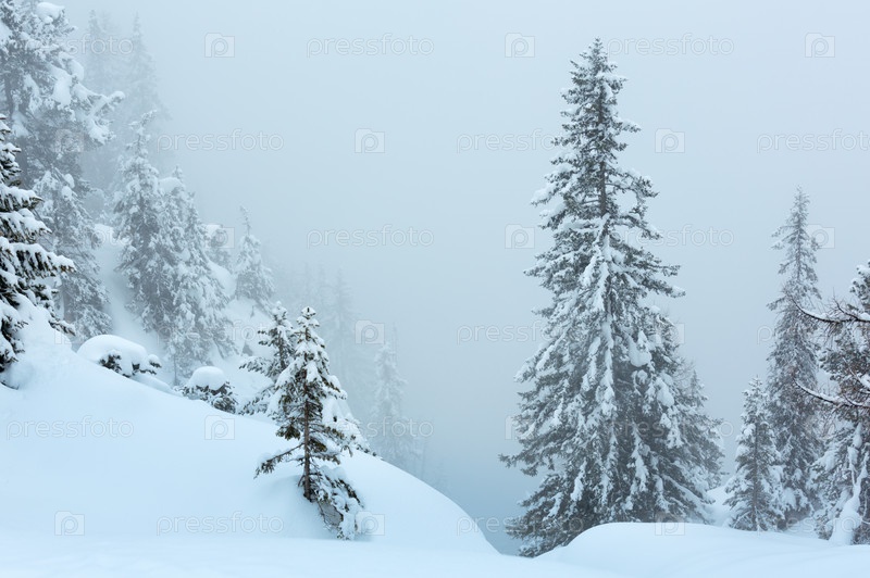 Зимний горный туманный пейзаж