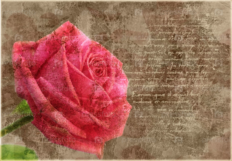 Винтажная открытка с красной розой
