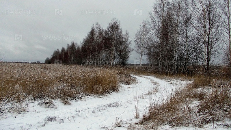 Зимняя дорога через поле, покрытая снегом