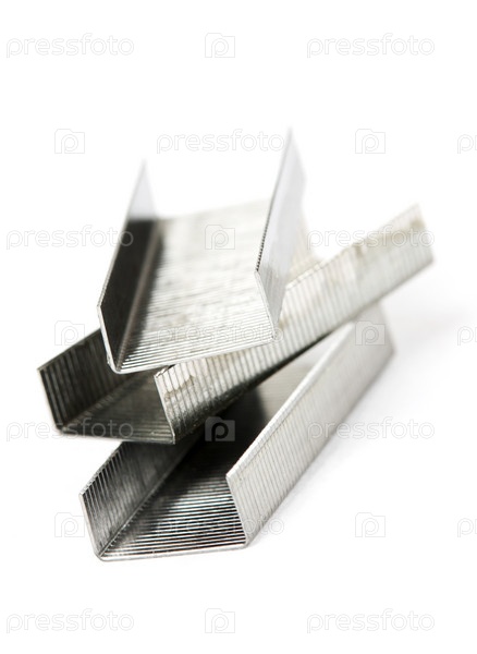Скобки для канцелярского степлера на белом фоне