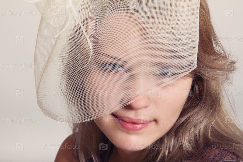 Красивая девушка в бежевой вуали