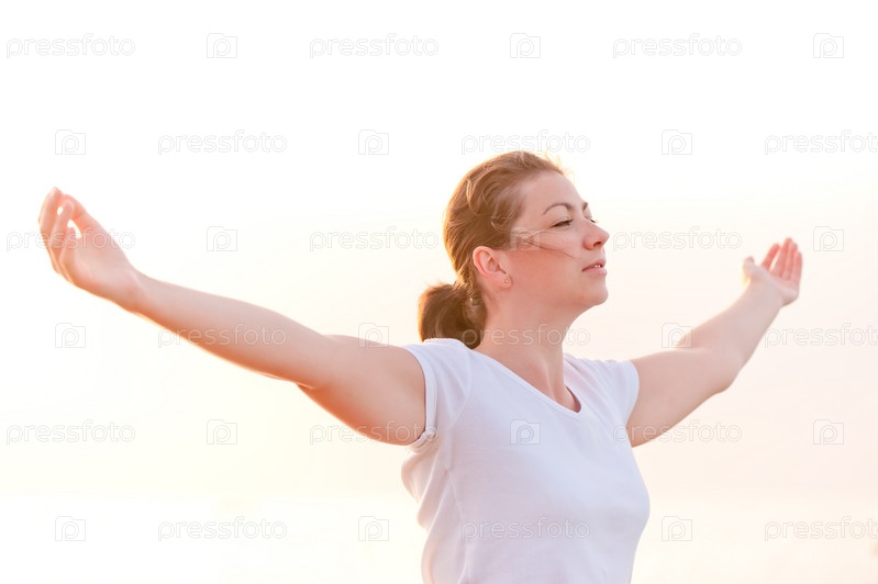 Молодая женщина наслаждается свободой с распростертыми объятиями