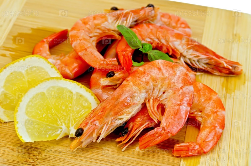 Креветки на деревянной доске