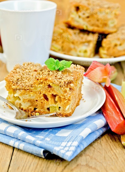 Пирог с ревенем и мятой на доске