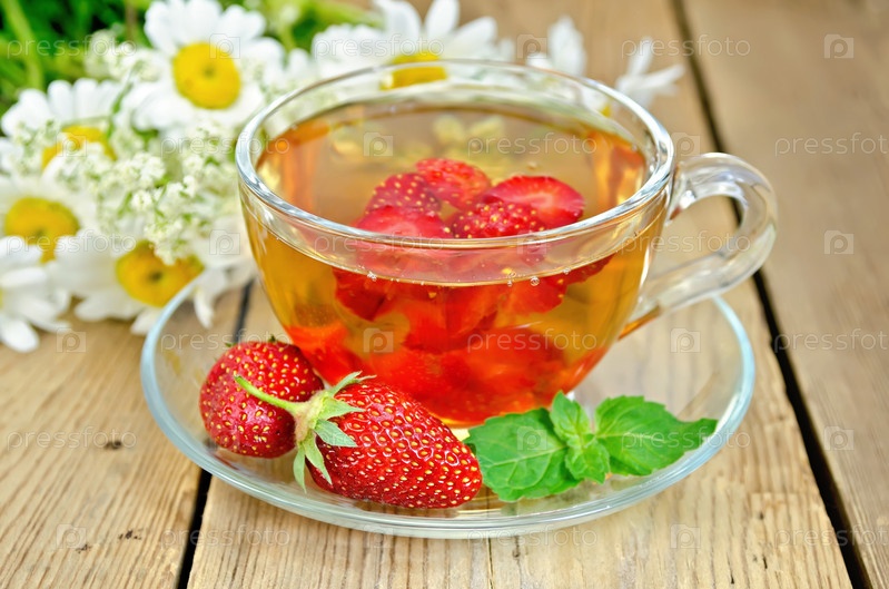 Чай с клубникой на доске