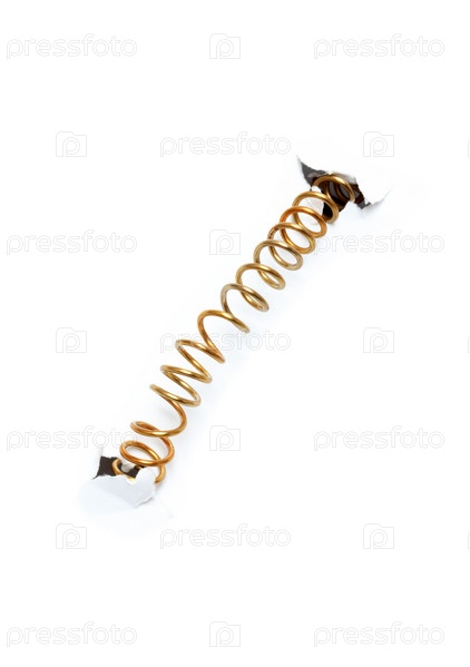 Металлическая пружинка сквозь белый лист бумаги