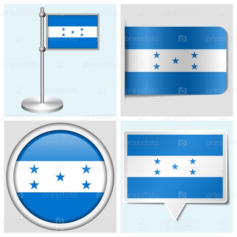 Флаг Гондураса - стикер, кнопка, флагшток и этикетка