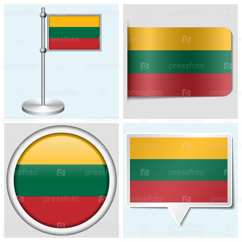 Флаг Литвы - стикер, кнопка, флагшток и этикетка