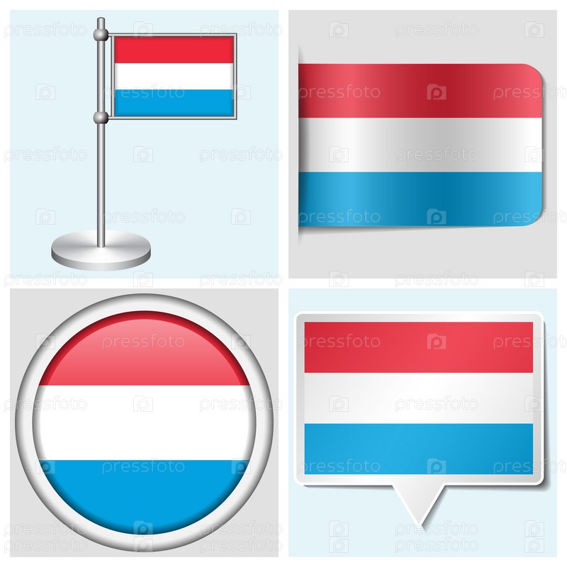 Флаг Люксембурга - стикер, кнопка, флагшток и этикетка