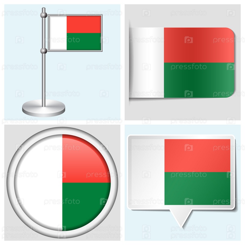Флаг Мадагаскара - стикер, кнопка, флагшток и этикетка