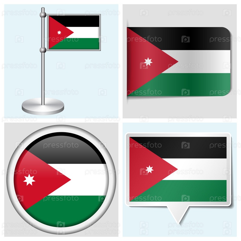 Флаг Иордании - стикер, кнопка, флагшток и этикетка