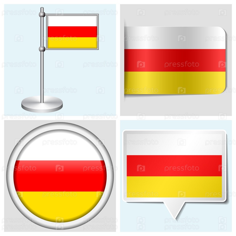 Флаг Южной Осетии - стикер, кнопка, этикетка и флагшток