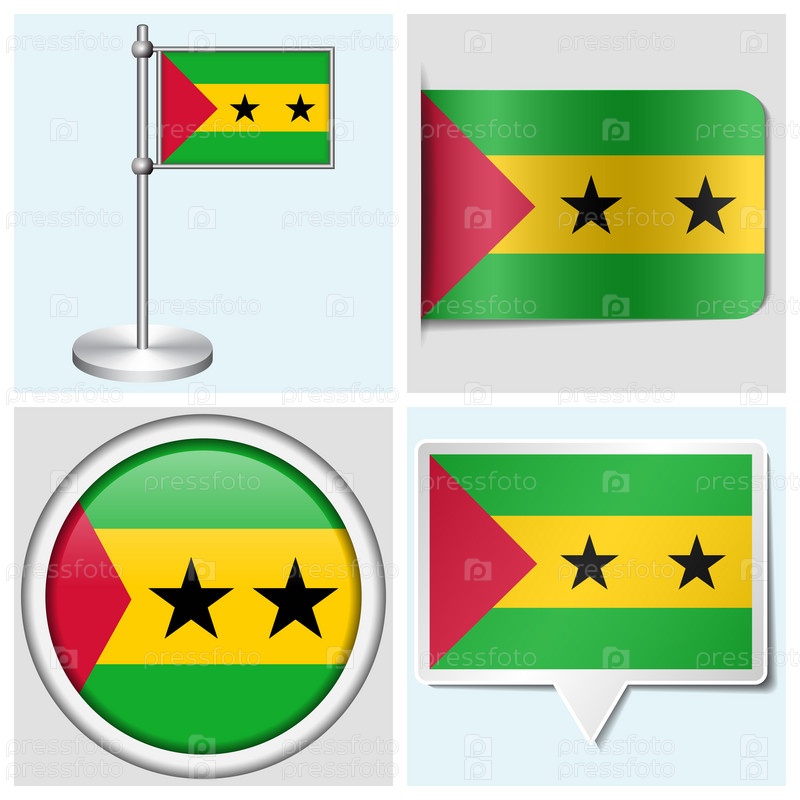 Флаг Сан-Томе и Принсипи - стикер, кнопка, этикетка и флагшток