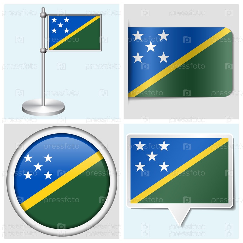 Флаг Соломоновых островов - стикер, кнопка, этикетка и флагшток