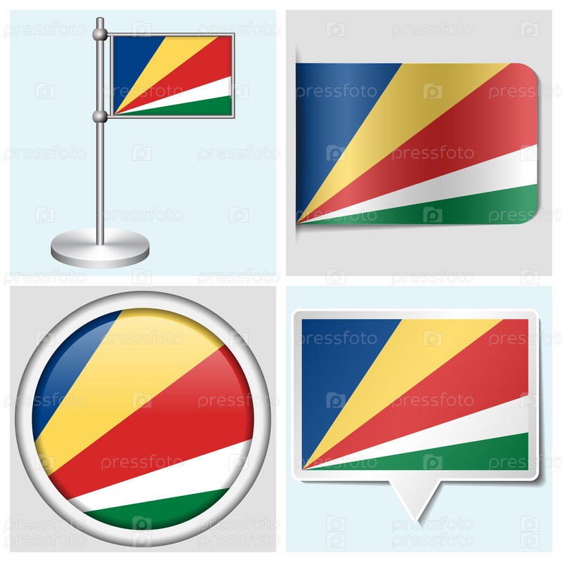 Флаг Сейшельских островов - стикер, кнопка, этикетка и флагшток