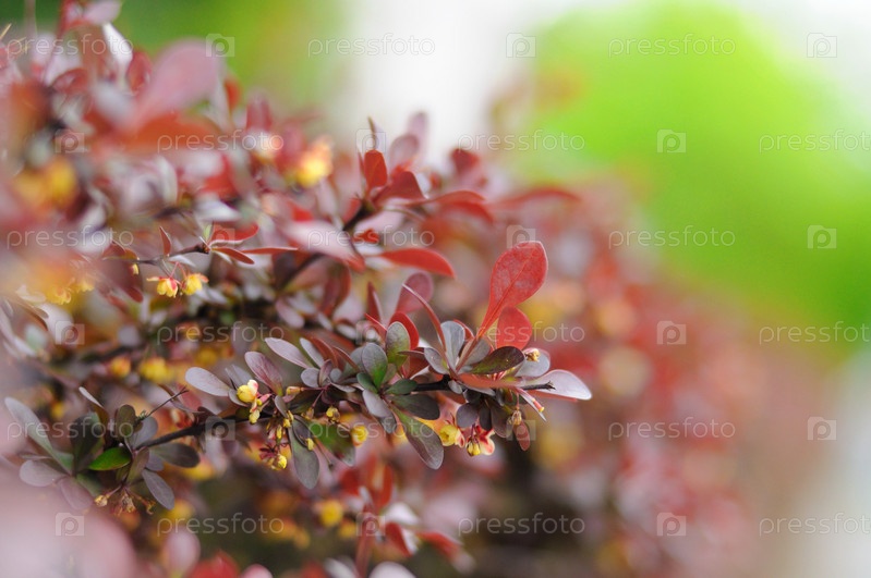 Красочные молодые листья куста в городе Фульда, Гессен, Германия