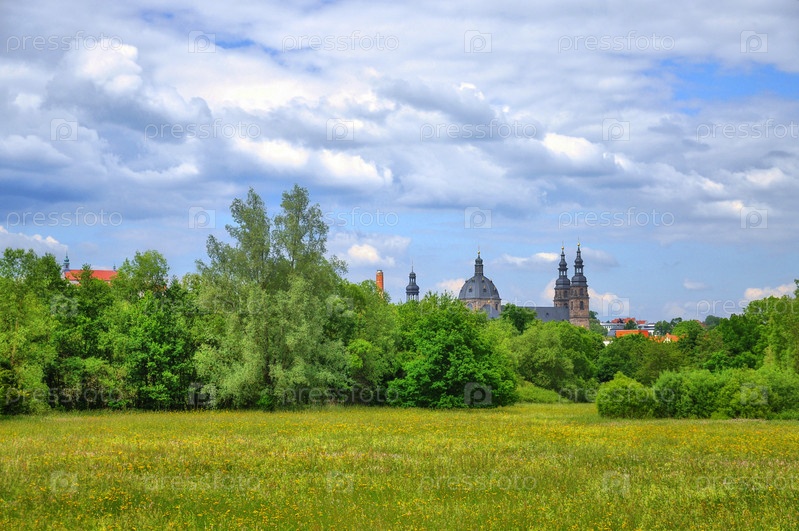 Поле в парке Aueweiher в городе Фулда, провинция Гессен, Германия