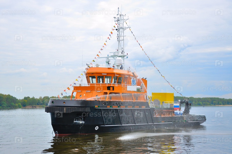 Черно-оранжевый корабль на Волге, Ярославль, Россия
