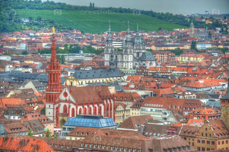 Вид Вюрцбурга из крепости Мариенберг, Вюрцбург, Бавария, Германия