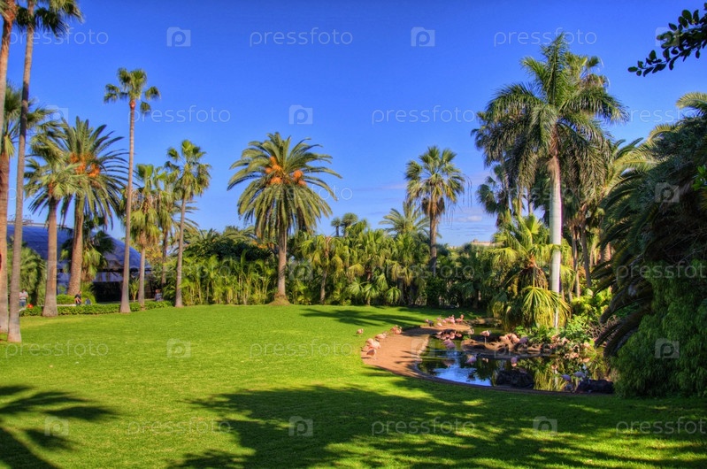 Фламинго возле пальмы, Тенерифе, Канарские острова