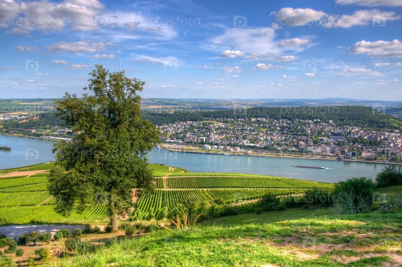 Виноградник возле крепости Бьюсенбург, Рюссельсхайм, Гессен, Германия