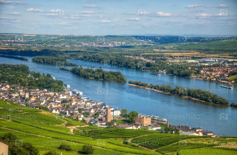 Город Рюссельсхайм на берегу реки Рейн, Пфальц, Германия
