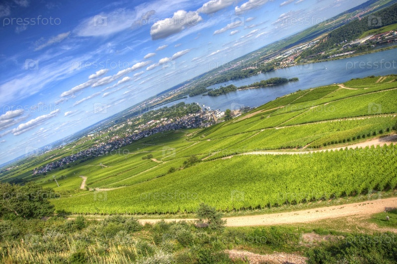 Виноградник возле крепости Бьюсенбург, Рюссельсхайм, Гессен, Германия