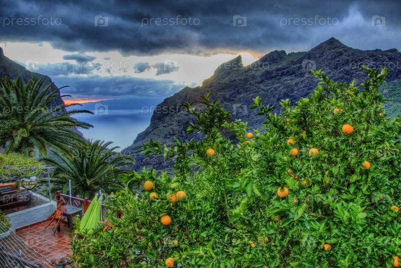 Апельсиновое дерево в деревне Маска в горах Тенерифе, Канарские острова