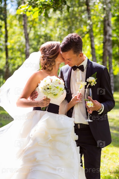 Молодые целующиеся жених и невеста