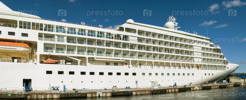 Белый круизный корабль на реке Неве. Санкт-Петербург, Россия