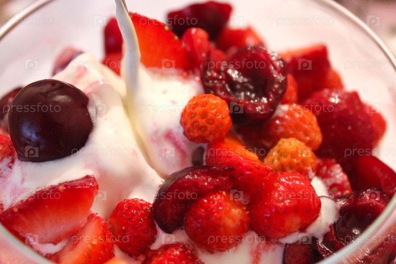 Мороженое с клубникой и вишней