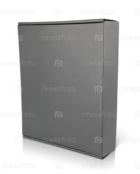 Закрытая пустая черная картонная коробка на белом фоне
