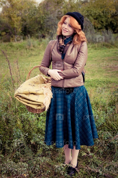 Портрет красивой рыжеволосой девушки в осеннем парке