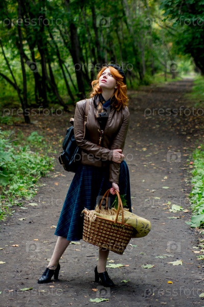 Портрет красивой рыжеволосой девушки в осеннем парке