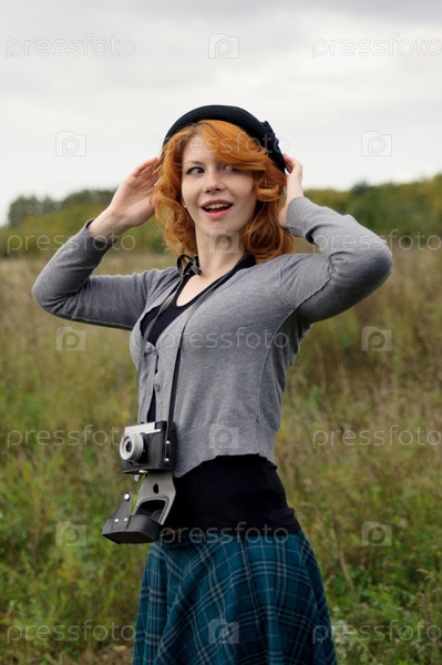 Портрет красивой рыжеволосой девушки в осеннем парке