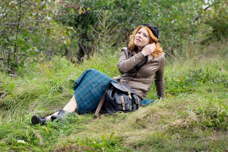Портрет красивой рыжеволосой девушки в осеннем парке