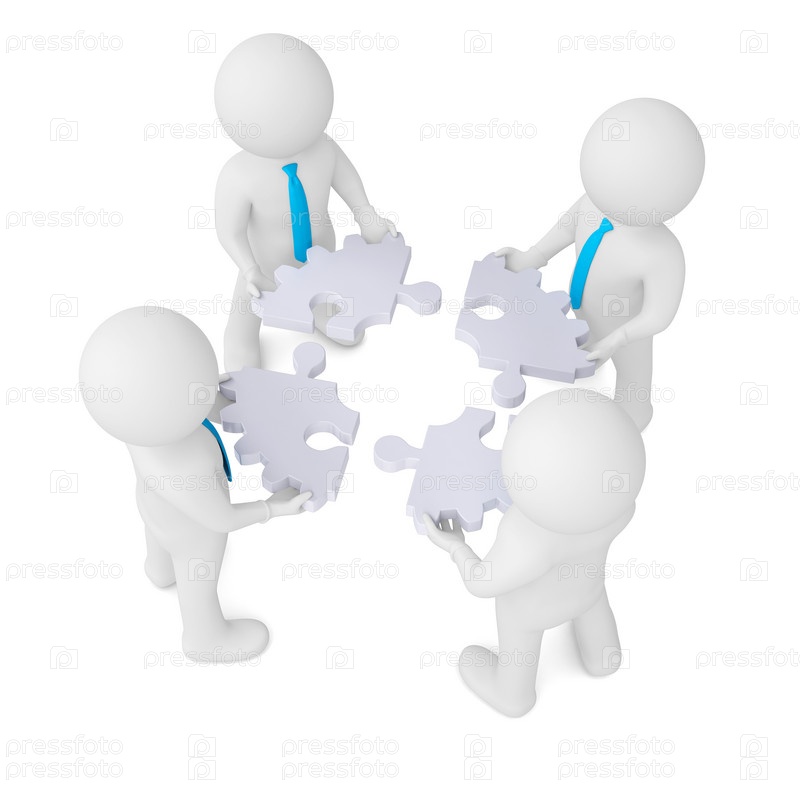 Четыре человека с деталью, состоящей из пазлов
