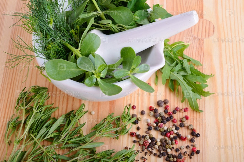 Зелень в ступке