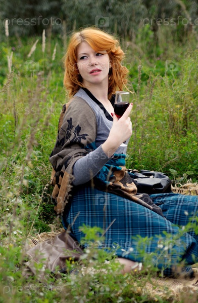 Портрет красивой рыжей девушки в осеннем парке