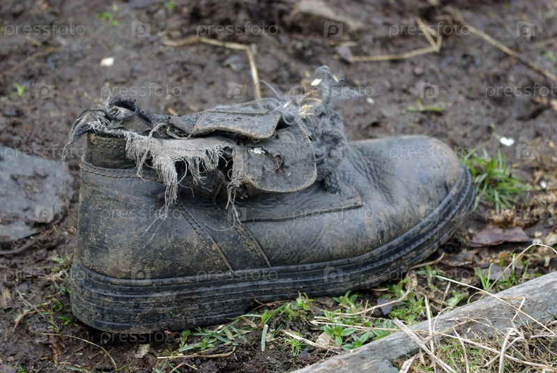 Старый ботинок лежит на земле