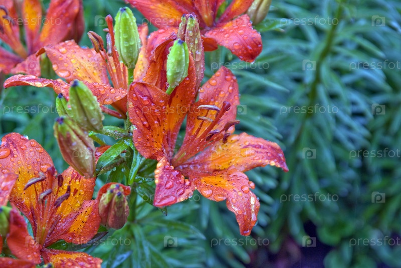 Красная лилия после рейн